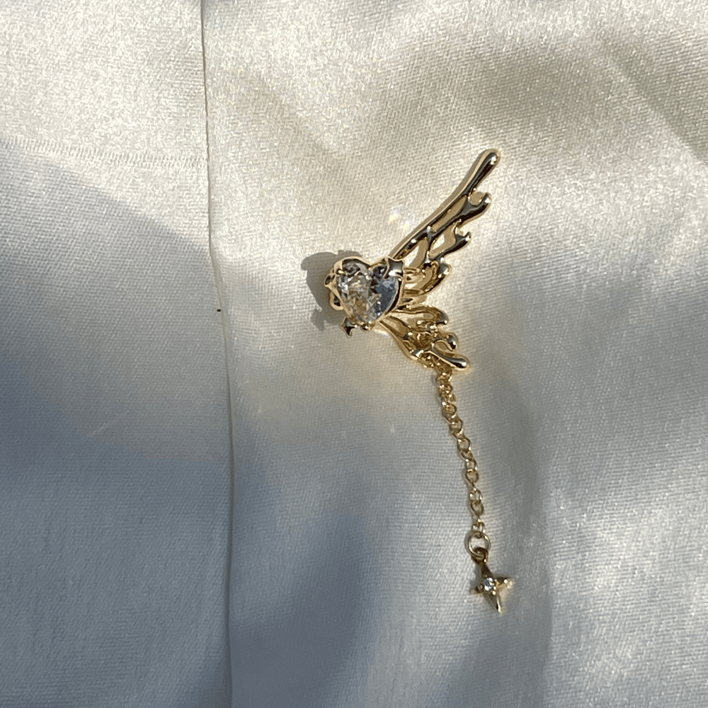 • Unique Design: Heart-shaped crystal framed with golden angel wings.