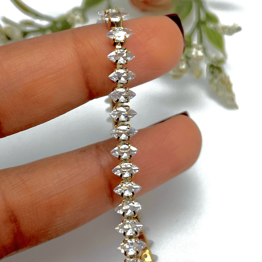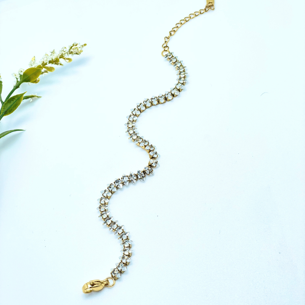 Add a touch of timeless elegance to your look with our DiamondAura Tennis Bracelet. Designed with high-shine zircon stones set in a sleek, golden finish, this bracelet delivers a luxurious sparkle that stands out effortlessly. Its refined tennis-style pattern offers a consistent, radiant glow, making it perfect for everyday wear or special occasions. Lightweight, comfortable, and finished with an adjustable clasp, the DiamondAura Tennis Bracelet is the ideal blend of sophistication and modern charm—your new go-to accessory for any outfit.