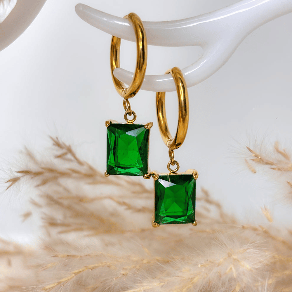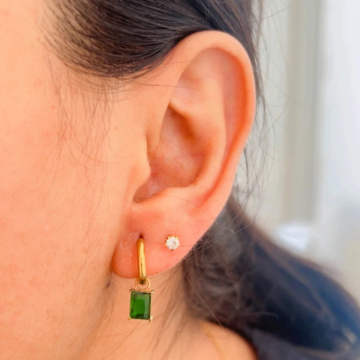 These timeless gold hoops feature a radiant emerald-green stone that captures the essence of sophistication and balance. The minimalist design paired with a bold pop of color makes them a must-have accessory — perfect for elevating both casual and evening outfits.