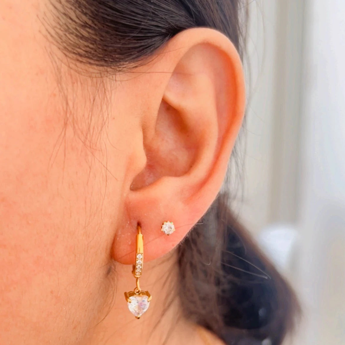 Elevate your elegance with our Heart Gold Drops — a timeless blend of romance and luxury. These graceful earrings feature heart-cut sparkling zirconia stones suspended from a sleek gold-plated hoop adorned with a delicate row of shimmering cubic zircons. The heart-shaped drop captures light beautifully, making it perfect for both everyday charm and special occasions. Whether you’re dressing up for a date night or gifting someone special, these earrings are a radiant expression of love and style